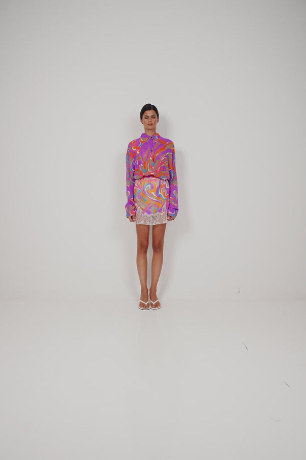 Light as air. This sheer shirt drapes effortlessly, designed to be worn undone or half-tucked for that relaxed S/W/F nonchalance.
