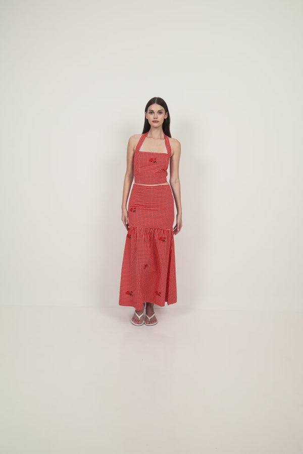 A fitted halter-neck top with clean lines and subtle shaping. Designed to sit close to the body.